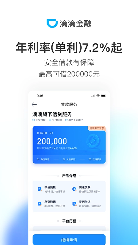 当下,滴滴金融拥有丰富多样的产品,像滴水贷、点滴保、滴滴支付等皆在其中。在这些产品里,滴水贷作为核心业务,能够为用户供给安心、便捷且快速的借款服务。此产品额度极为灵活,最高额度能够达到20万元,而且息费清晰透明,整个申请过程都可在线上完成,重要的是无需抵押就能贷款。与此同时,滴滴应用内的滴滴支付,是经中国人民银行批准获取《支付业务许可证》的第三方支付平台。它的功能主要用于滴滴各项业务的支付场景,为用户打造支付产品解决方案,让用户在出行支付时更加便利高效。有需求的用户能够在本站免费使用。
