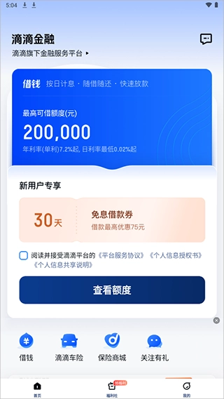 凭借滴滴数科旗下的小额贷款公司,落实安全可靠的普惠金融信贷服务。
