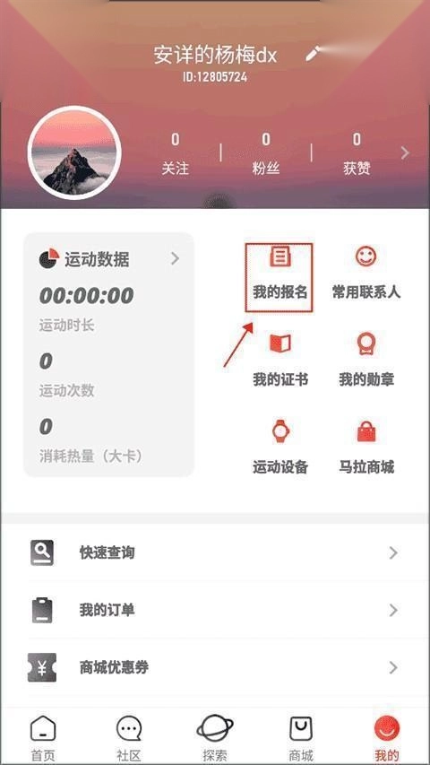 1、若要取消马拉松报名,可在“我的”页面,点击“我的报名”。