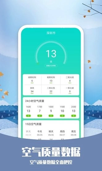 空气质量状况:提供实时的空气质量监测数据,精准预报pm2.5数值以及AQI指数。我们不仅关注天气变化,更在意您的健康生活品质。