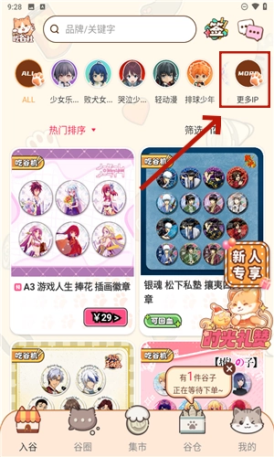 3、点击上方的“更多IP”,从中挑选自己感兴趣的动漫IP。