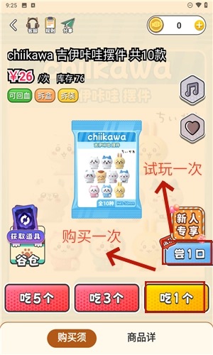 6、 “尝一口”代表可试玩一次,“吃1个”意味着购买一次,依此类推。请在自身能够承受的范围之内进行下单。