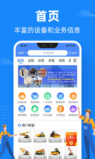 从交易场景来看,它为用户搭建了高效对接的桥梁:想出租或出售自有机械的用户,能精准触达潜在需求方;有租用或购买机械需求的用户,也能快速匹配到合适的设备资源。针对二手机械这一细分需求,平台还专门设置了独立板块,充分覆盖不同用户的差异化选择。