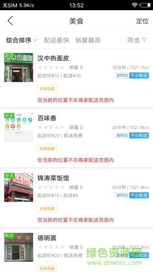 外卖店铺筛选功能,方便用户选择自己所需店铺。