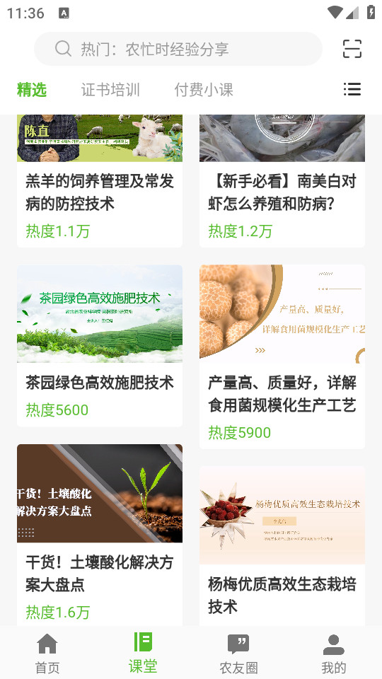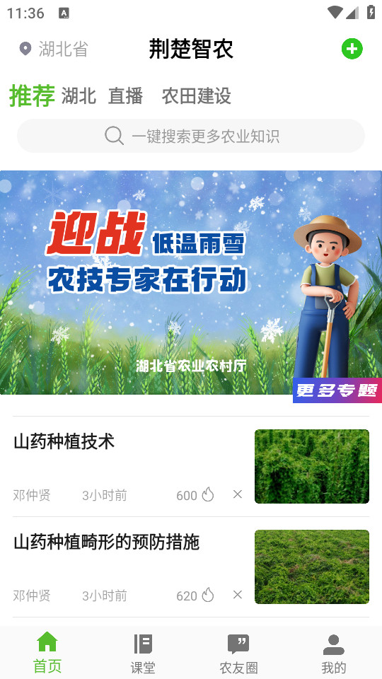 用户不仅能在平台上学习农技相关的知识内容,还能在农业社区开展各类交流活动。