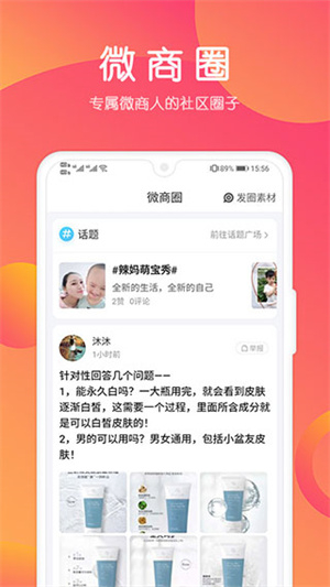 为微商量身打造的专属朋友圈,这里汇聚了各行各业的丰富信息,你可以和行业内的大咖们尽情分享与交流。