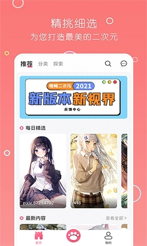 在本站打开软件后,首界面会依据不同的标签分类来陈列图片。