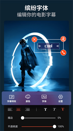 视频字幕:缤纷视频支持添加字幕,还能自由控制字幕的时间轴,同时具备字幕描边和滚动字幕功能,让文字的呈现更具吸引力与表现力。