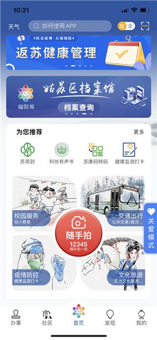 打开惠姑苏,在【首页】中找到【苏康码转码】。