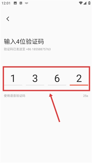 在【输入4位验证码】页面,把收到的验证码数字填写到对应的输入框中,以此完成验证信息的填写环节。