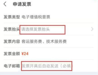 进入申请发票界面中填写“发票抬头”等必要信息。