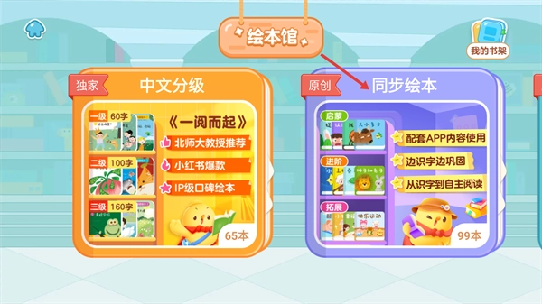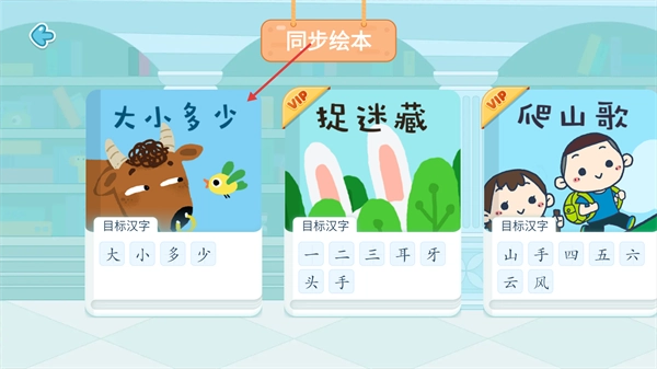 在【同步绘本】分类中,可以挑选目标书籍,例如【大小多少】。