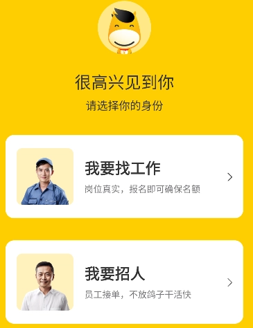 然后选择自己的身份。如果是要找工作就点击“我要找工作”,反之点击“我要招人”