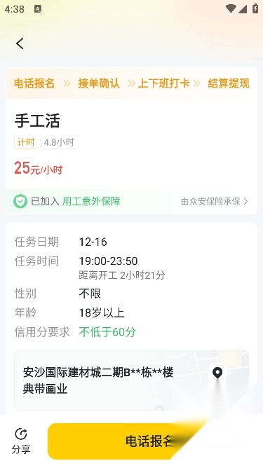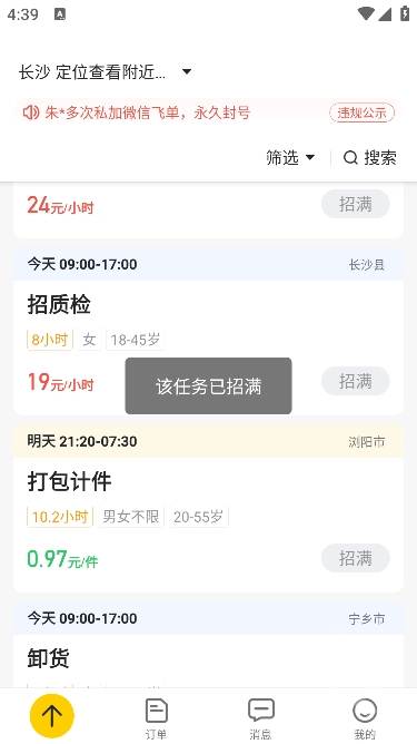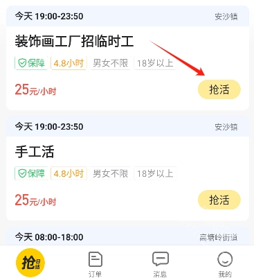 首先开启手机定位功能,接着挑选自己能够胜任的工作,最后点击右侧的“抢活”按钮就可以了。