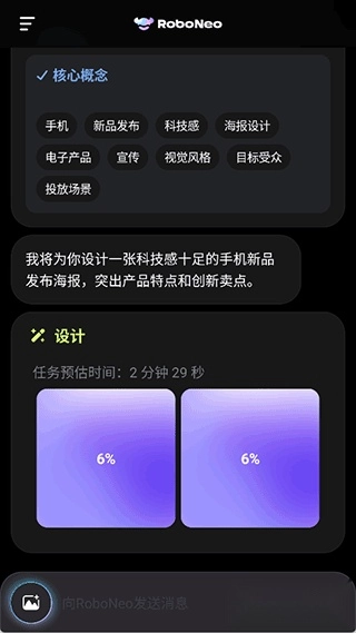 RoboNeo安卓版是厦门美图网科技有限公司开发的智能创作工具平台,核心功能包括智能编辑创作与AI设计生成服务。用户只需下达简单指令,平台就能对图片元素进行去除、转换等操作,并实现高效无缝衔接,呈现优质创作效果。此外,它还支持轻松生成海报、logo、表情包等各类内容,用户可依据自身灵感自由描述需求,即可获取高品质的AI创作作品。
