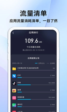 随身流量宝能够助力你更优地管理手机的流量消耗与网络连接状态。不管是借助流量预警功能来科学规划数据使用,还是利用wifi测速和网络诊断功能对网络连接进行优化,又或者通过流量排行和每日统计功能掌握并管控数据使用状况,随身流量宝都能让你更高效地运用手机与网络资源。