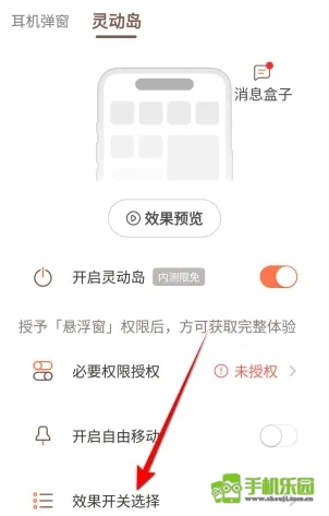 点击效果开关选择按钮。