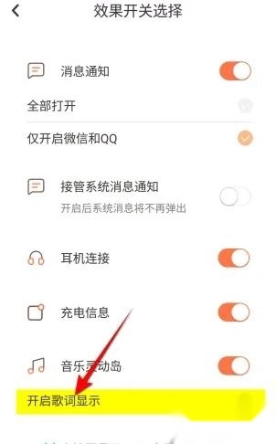 点击开启歌词显示功能开关,打开即可。
