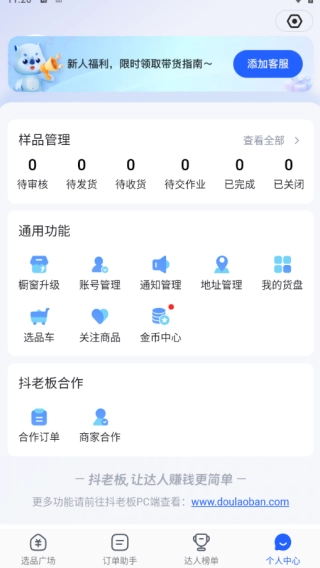 软件订单页面支持查看当日数据,还具备橱窗升佣、商品专题、短视频种草等功能。