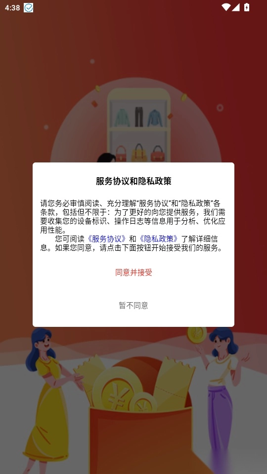 打开软件后,先阅读“服务协议和隐私政策”,然后点击“同意并接受”按钮,即可进入软件。