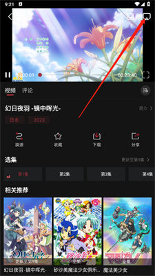 在动漫播放页面点击右上角的投屏按钮;