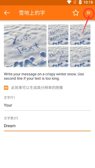 可以看到这里能输入两行文字,在内容区域填写你想输入的内容后,点击右上角的“好”按钮即可。