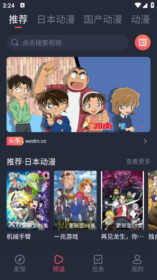2、进入首页后,你会看到日漫、韩漫、国产动漫等多种不同类型的动漫。