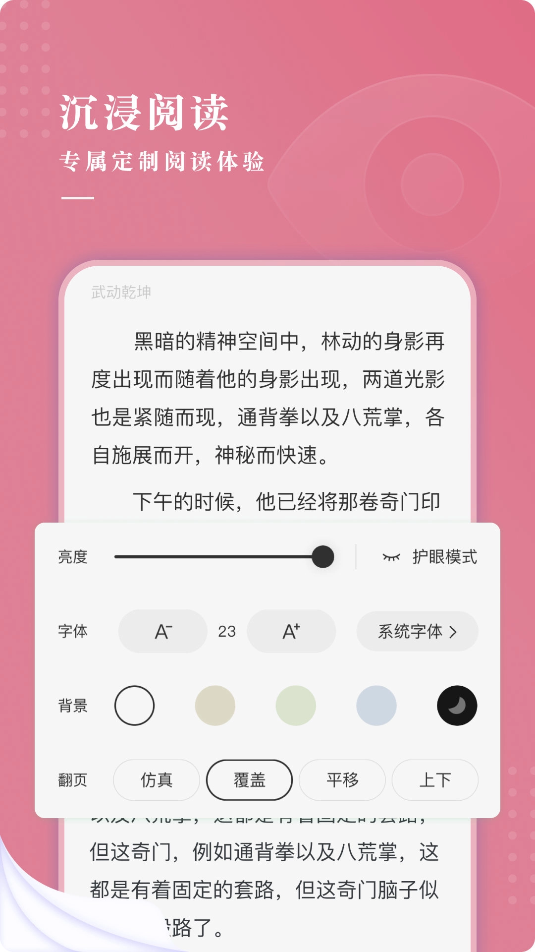 4、定制设置:可自由调整阅读字体大小与背景颜色,灵活改变阅读界面的显示样式,既能有效呵护视力,又能为读者读书提供便利。