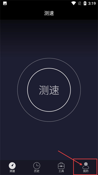 1、打开测速应用并进入测速页面后,点击底部的【我的】选项,即可进入个人中心页面。