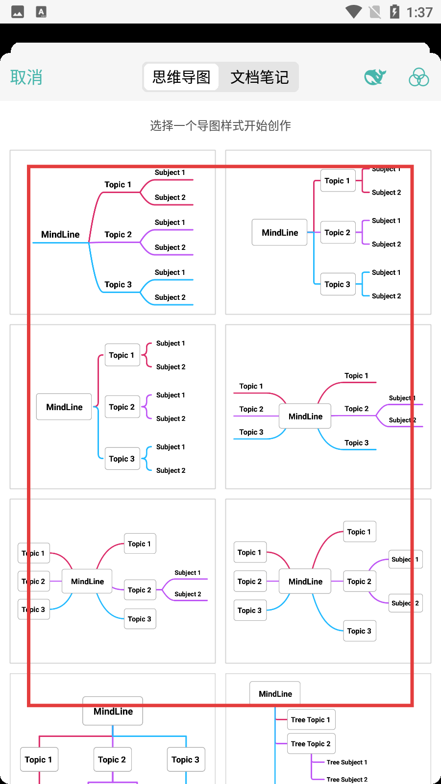 在思维导图的创作界面中,你能够挑选多种风格各异的导图模板来开启创作,以此满足各类思维整理的需求。
