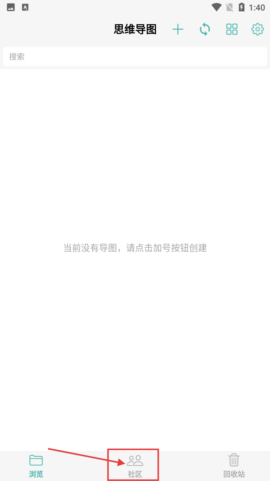 在思维导图的主界面中,要是当前没有打开任何导图,能够点击加号按钮来新建思维导图,此外界面还配备了搜索、刷新之类的功能选项。