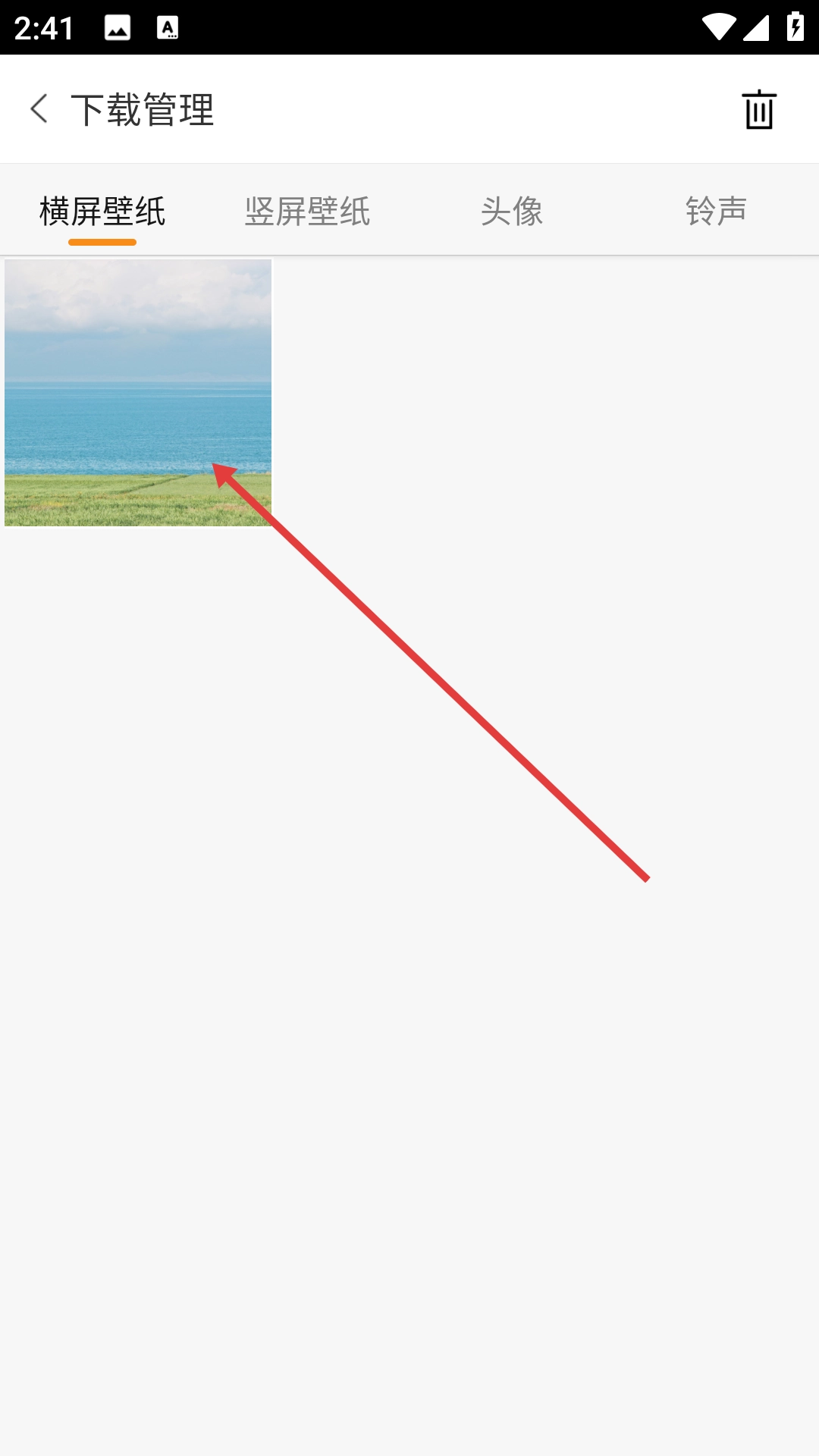 3、进入管理页面,点击已的壁纸图片。