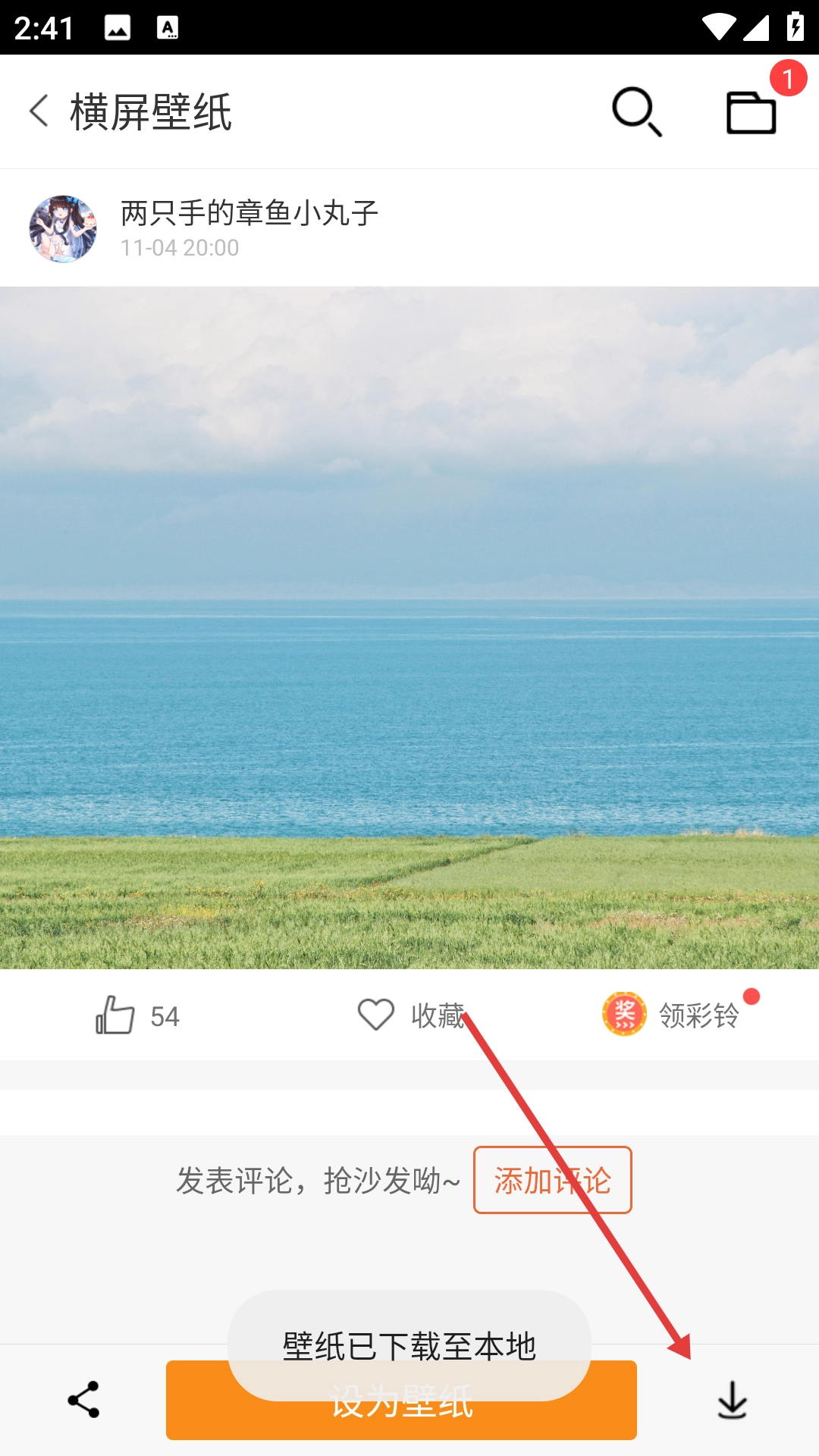 2、在壁纸详情页面点击按钮,将壁纸至本地。