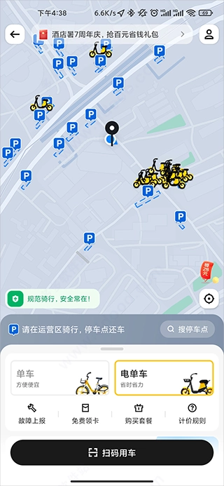 通过精准的地图定位功能锁定车辆位置后,用户既能够直接扫码即时用车,也可以通过预约的方式提前选定要使用的车辆。
