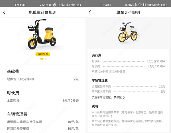 4、另外需要留意的是,电单车与单车的计价规则存在差异。
