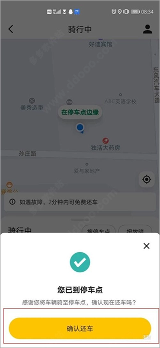 第三步在提示处确认还车。
