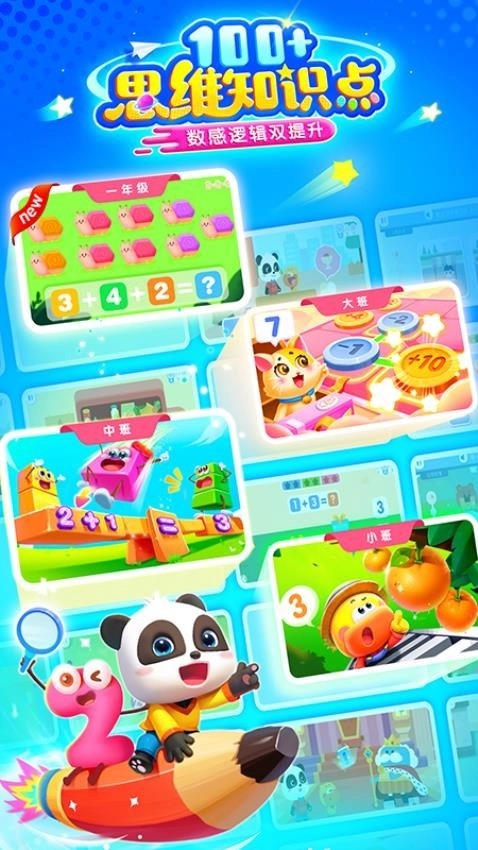 宝宝巴士思维为您提供四大领域及100+知识点,带来专业的思维启蒙课程,是帮助孩子认识数量、图形、运算、脑力等内容的必备学习工具!