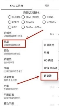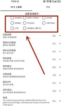 1、启动gfx画质工具箱,挑选与游戏版本相匹配的选项(比如国服、国际服之类的)。