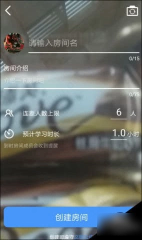 2、接下来需要填写房间名称和简介内容,同时设置连麦人数的上限以及预计的学习时长,最后通过底部的按钮来创建房间。