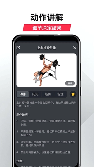 帮您在专注于训练过程的同时,快速记录各类训练数据,像动作、组数、次数、热身环节、递减组和超级组等都能涵盖其中。