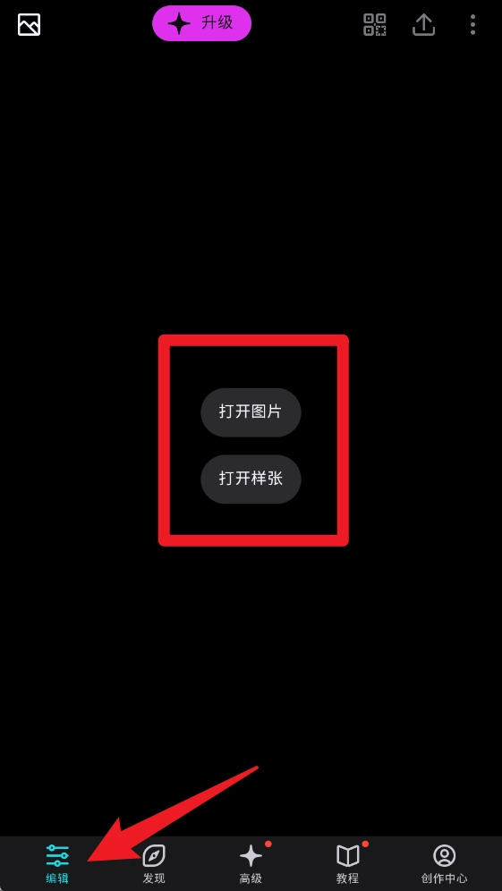 2、点击底部“编辑”选项,可从本地相册打开图片或样张,开启照片处理流程;