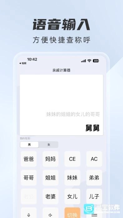 辈分计算器是一款相当实用的家庭关系计算器类型软件,在这款软件之中可以快速的帮你了解直系亲属之间的辈分关系,只需要简单的输入相关的信息,就可以非常清晰的衍生出各种家庭关系的辈分以及称呼,让你在遇到家庭聚会的时候完全不需要担心任何的称呼问题。辈分计算器之中可以很好的帮助你完成一系列的控制,输入正确的关系就可以得到一个正确的称呼体验哦。