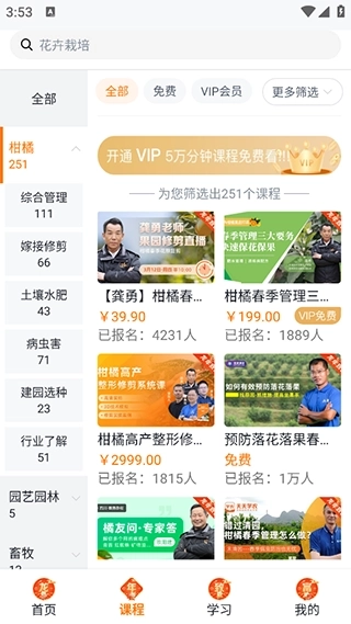 3、想要免费学习农业知识,可以选择上面的“免费”选项