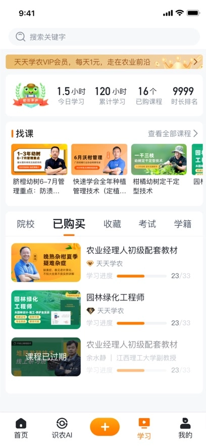 天天学农是一款专业的农业在线学习平台,在这个平台用户是能够获取到全面的学习服务的,您可以获取浏览到海量的课程,在这里为大家带来了更加丰富的知识内容,用户都是可以快速掌握到农业技能的学习,有需要的朋友现在就来使用吧!