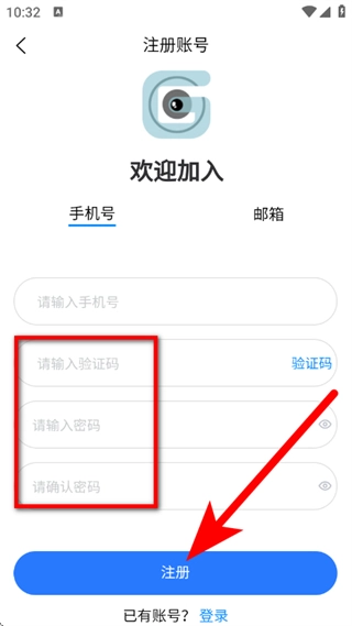4、填写验证码,设定登录密码,点击注册按钮,即可完成账号注册流程。