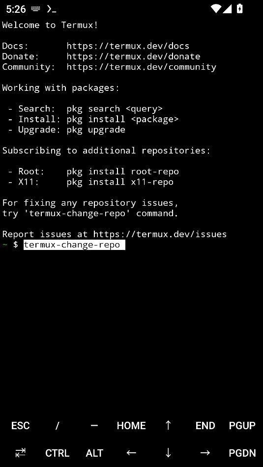 1、在 Termux 里输入并运行命令:termux-change-repo