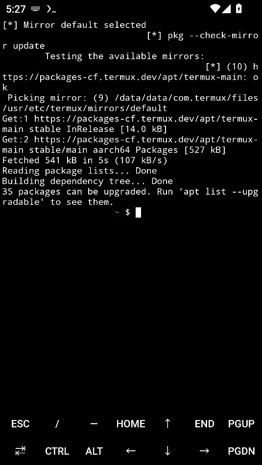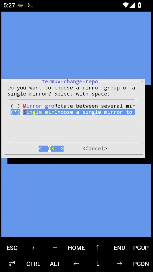 在较新版的 Termux 中,提供了基于文本的图形界面(TUI)来半自动更换软件源镜像,推荐优先使用该方式,以避免手动修改配置可能带来的错误或风险。