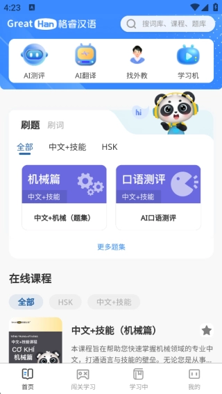 GreatHan软件是款多功能汉语学习平台,在线学习资料很丰富,轻松满足不同用户在线学习的需求,知识点讲解很详细,打造多元化自学平台,随时开启视频的学习以及题库训练等,高效且全面的答题训练学习软件,各位可以随时学习汉语。
