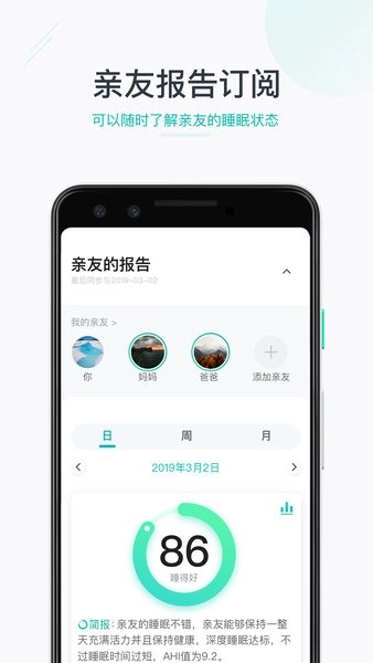 最多可添加5位家庭成员,查看他们的睡眠达标率和深睡时长。