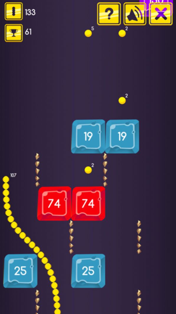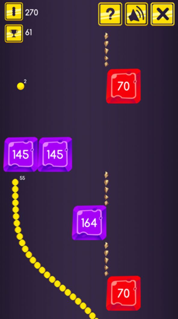 2.沿途吃其他球时,蛇会长一些。当压碎一块时,蛇会变短,直到击中的块上写有一个数字。它会被摧毁。